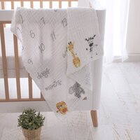 The Zoo Animals Muslin Milestone blanket from Bubba Blue features 6 favourite Zoo Animals, and two felt frames for you to photograph and mark your babies milestones. With supersoft layers of muslin, it’s perfect for bedtime, outings and tummy time too!