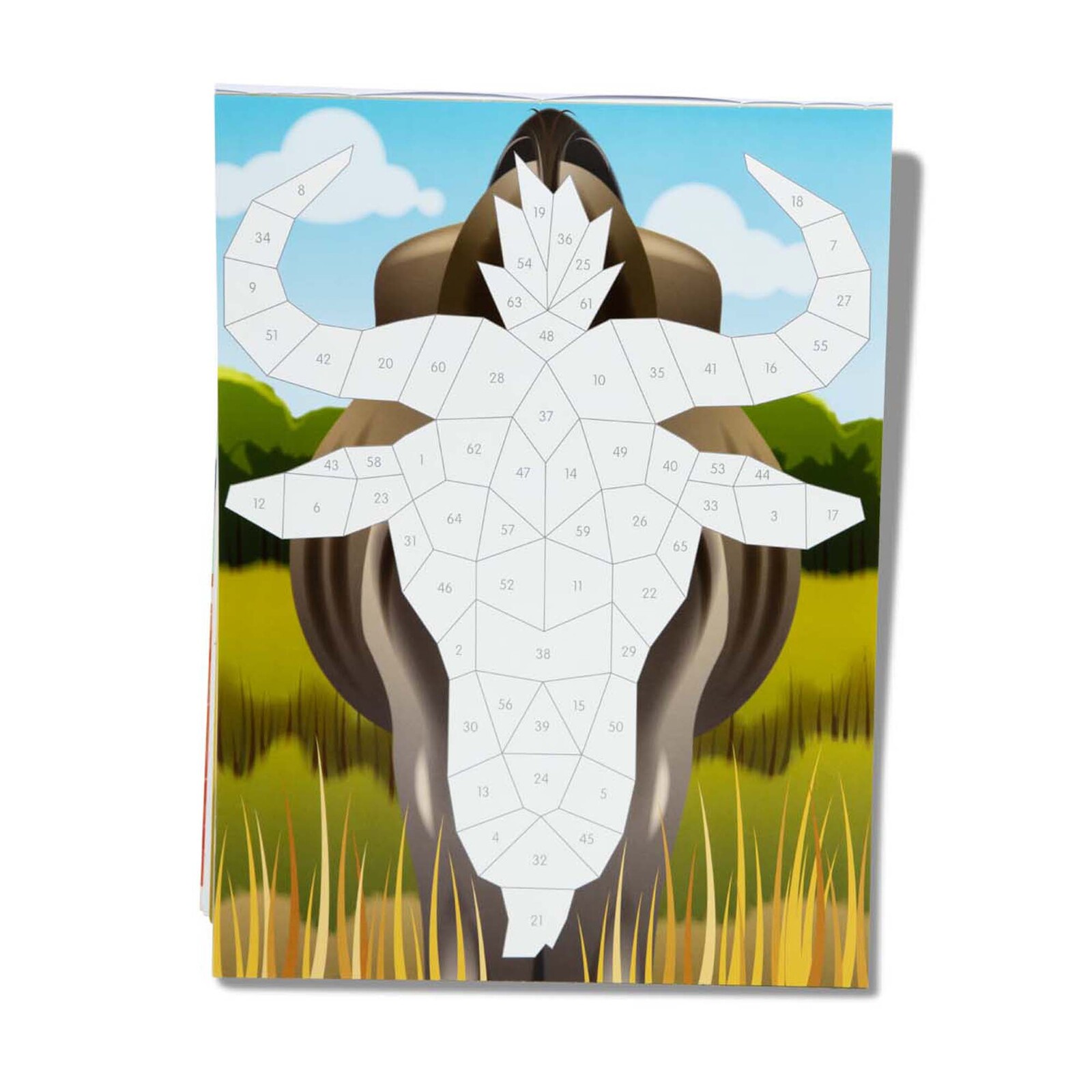 Piece together hundreds of colorful stickers to complete beautiful safari animal scenes! Match 12 pages of number-coded stickers to the numbered spaces on 12 pages of lushly drawn full-color scenes and see the safari animals come to life. Sticker sheets are removable for easy matching. It's fun and easy for kids --and grown-ups, too!--to create mosaics of a zebra, flamingo, giraffe, hippo, rhino, and more with the more than 850 stickers. It's a relaxing creative project for animal lovers seven to 107!